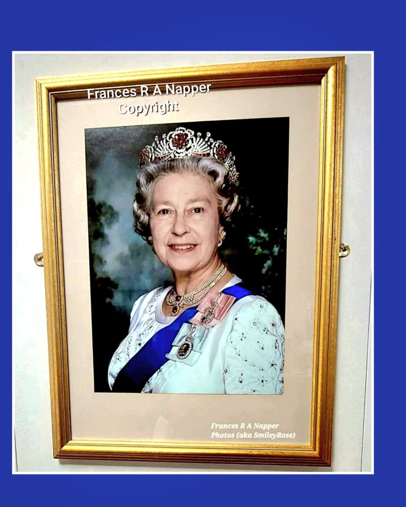 The late Queen Elizabeth’s portrait graces a wall (see below).